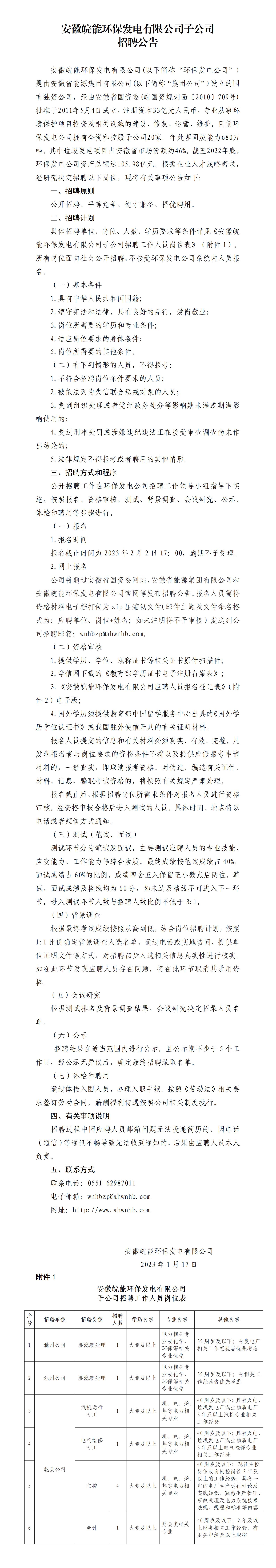 2023年安徽皖能環(huán)保發(fā)電有限公司子公司招聘公告