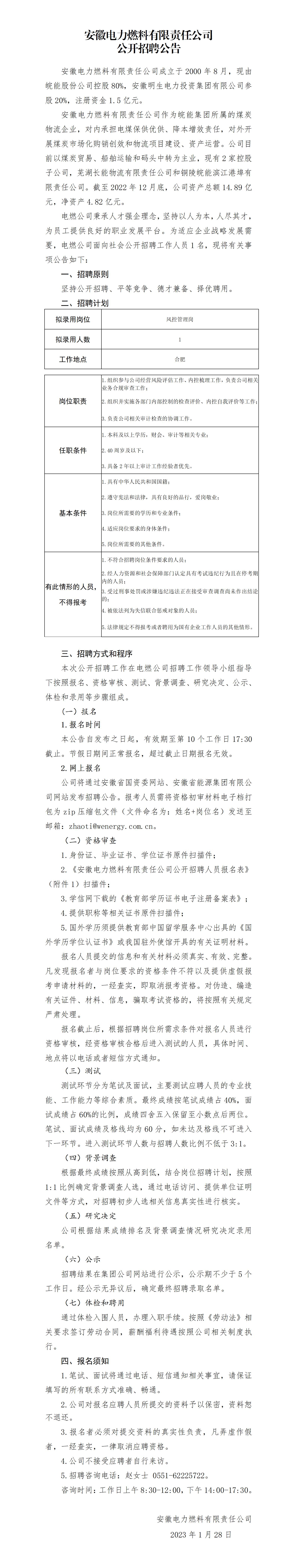 2023年安徽電力燃料有限責(zé)任公司公開招聘公告