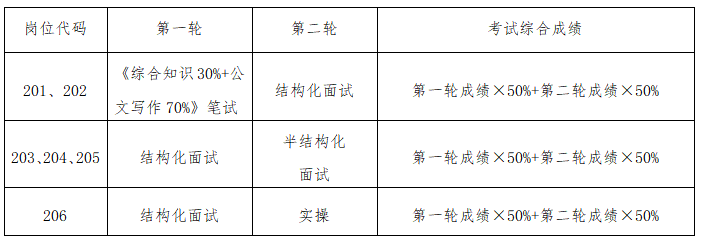 2、崗位代碼201、202崗第一輪設(shè)定最低分?jǐn)?shù)線60分,崗位代碼203、204、205、206崗第一輪設(shè)定最低分?jǐn)?shù)線70分。