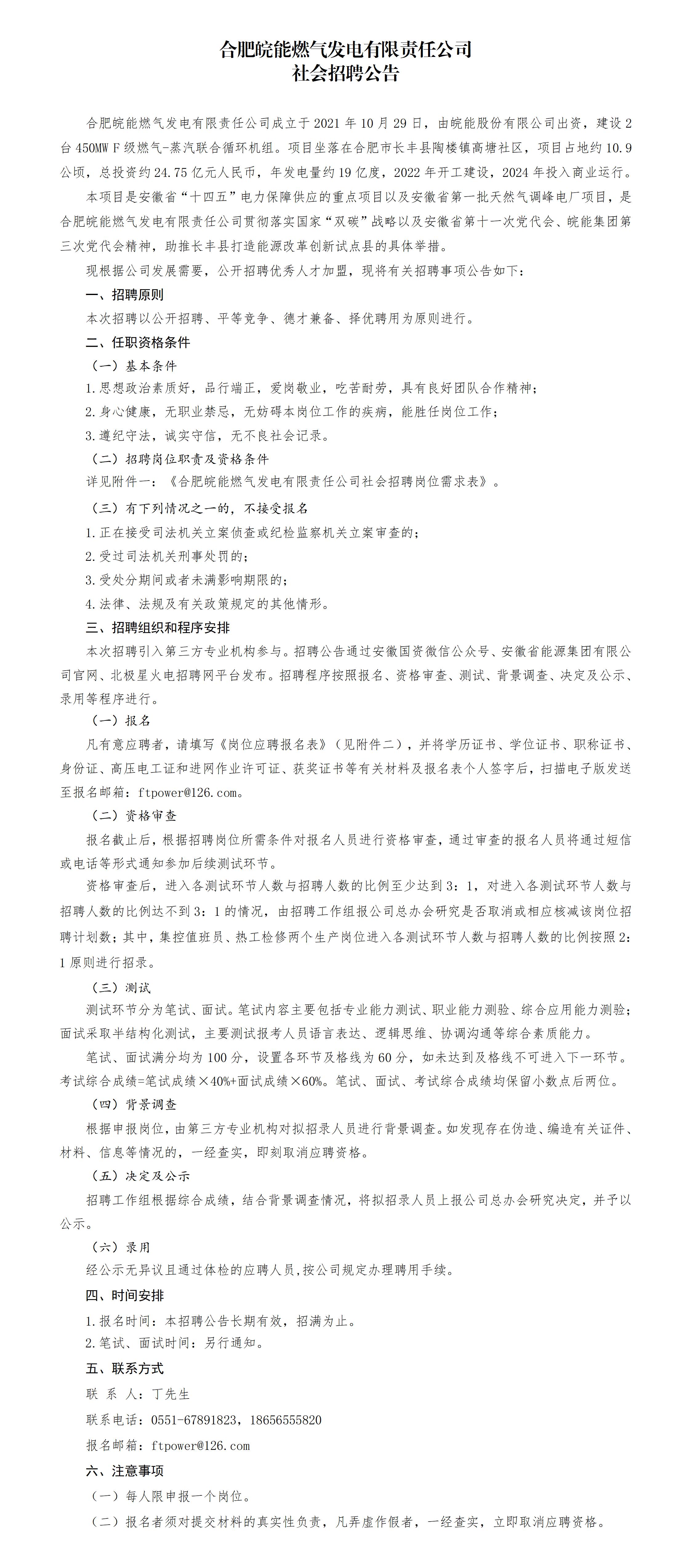 詳見附件一:《合肥皖能燃氣發(fā)電有限責(zé)任公司社會招聘崗位需求表》。