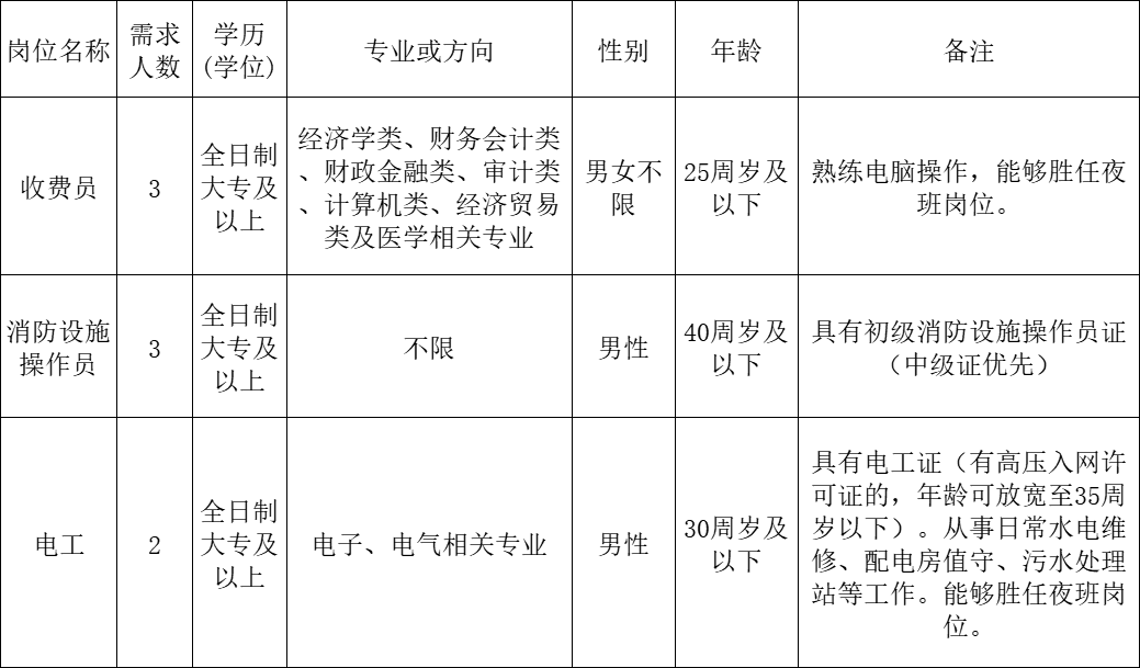 1.對公告無異議人員,由公司委派到黃山市傳染病醫(yī)院(黃山市人民醫(yī)院西區(qū))從事收費員、消防設施操作員、電工工作。