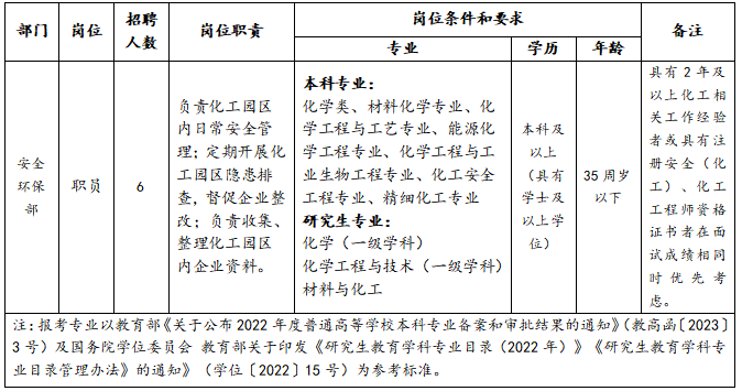 2023-05-17 15:40:13閱讀()寧國市人民政府為滿足公司發(fā)展需要,寧國經(jīng)濟(jì)技術(shù)開發(fā)區(qū)管委會所屬公司安徽興港化工有限公司擬面向社會公開招聘6名工作人員,現(xiàn)將有關(guān)事項(xiàng)公告如下: