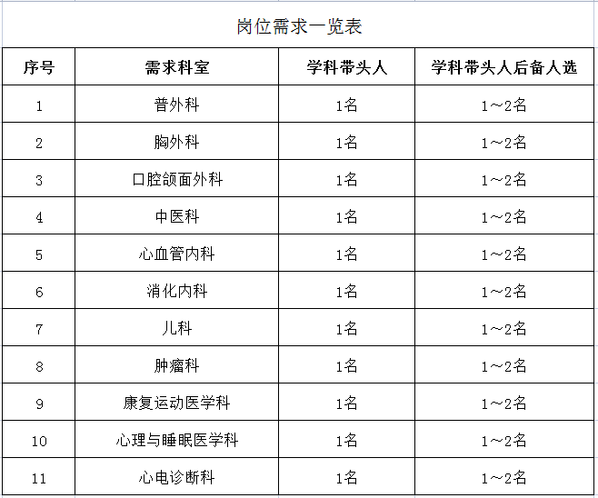 (3)職稱:臨床科室具有衛(wèi)生系列正高職稱、教學(xué)系列副高職稱。