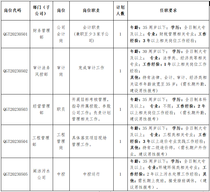 公開招聘人員崗位表中涉及“年齡條件”的如“35周歲(含)以下”為“1988年5月31日(含)以后出生”(其他涉及年齡計算的依此類推);工作經歷要求,截止時間為2023年5月31日。