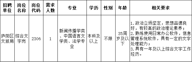 結(jié)合實際工作需要,經(jīng)研究決定,廬陽區(qū)文旅局2023年面向社會公開招聘政府購買服務(wù)崗位工作人員1名,現(xiàn)將有關(guān)事項公告如下: