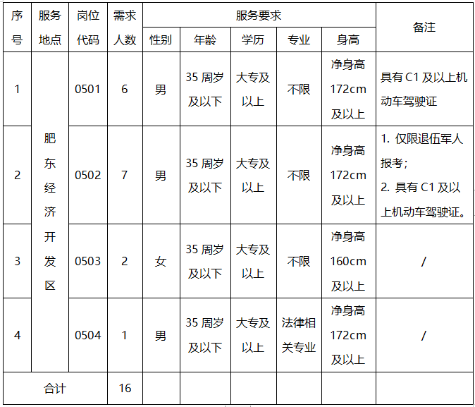 因工作需要,安徽皖信人力資源管理有限公司現(xiàn)面向社會(huì)公開招聘城市管理輔助項(xiàng)目服務(wù)人員16名?,F(xiàn)將有關(guān)事項(xiàng)公告如下:
