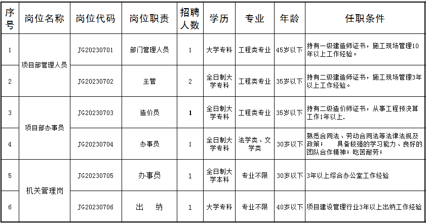 公開招聘人員崗位表中涉及“年齡條件”的如“45歲以下”為“1978年7月31日(含)以后出生”(其他涉及年齡計算的依此類推);工作經(jīng)歷要求,截止時間為2023年7月31日。