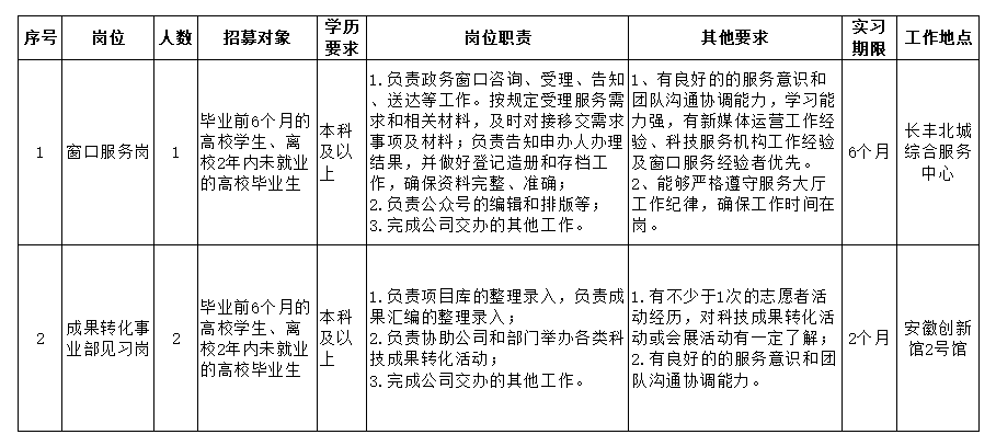 安徽科技大市場建設(shè)運營有限責任公司成立于2020年9月,是國有全資有限責任公司,公司以推動構(gòu)建專業(yè)化、市場化、國際化的科技成果轉(zhuǎn)化市場服務(wù)體系為目標,依托安徽創(chuàng)新館,建強用好安徽科技大市場,打造合肥濱湖科學城高質(zhì)量發(fā)展新引擎?,F(xiàn)因工作需要,面向社會招募3名見習人員,有關(guān)事項公告如下: