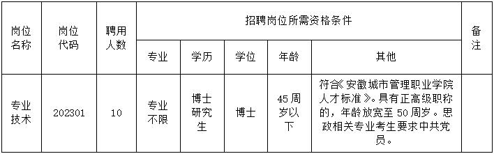在滿足上述基本條件的前提下,招聘對(duì)象還須滿足省委編辦《關(guān)于安徽城市管理職業(yè)學(xué)院編制周轉(zhuǎn)池制度試點(diǎn)工作實(shí)施方案的批復(fù)》中的《安徽城市管理職業(yè)學(xué)院人才標(biāo)準(zhǔn)》(附件2)方能報(bào)考。