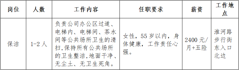 招聘單位四:合肥某國(guó)有企業(yè)(物業(yè)公司)招聘保潔人員