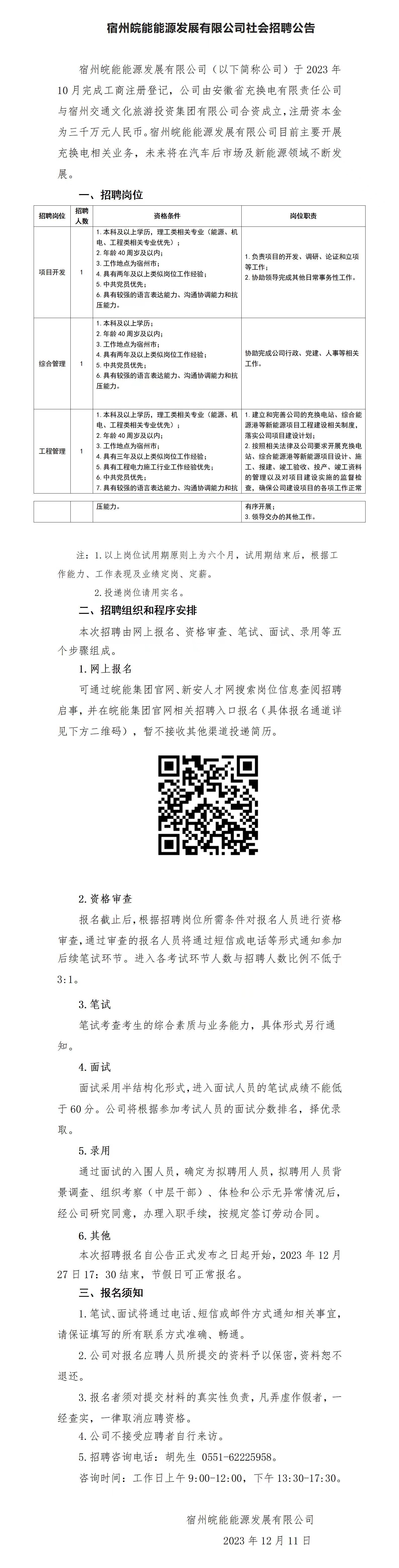 2023年宿州皖能能源發(fā)展有限公司社會招聘公告