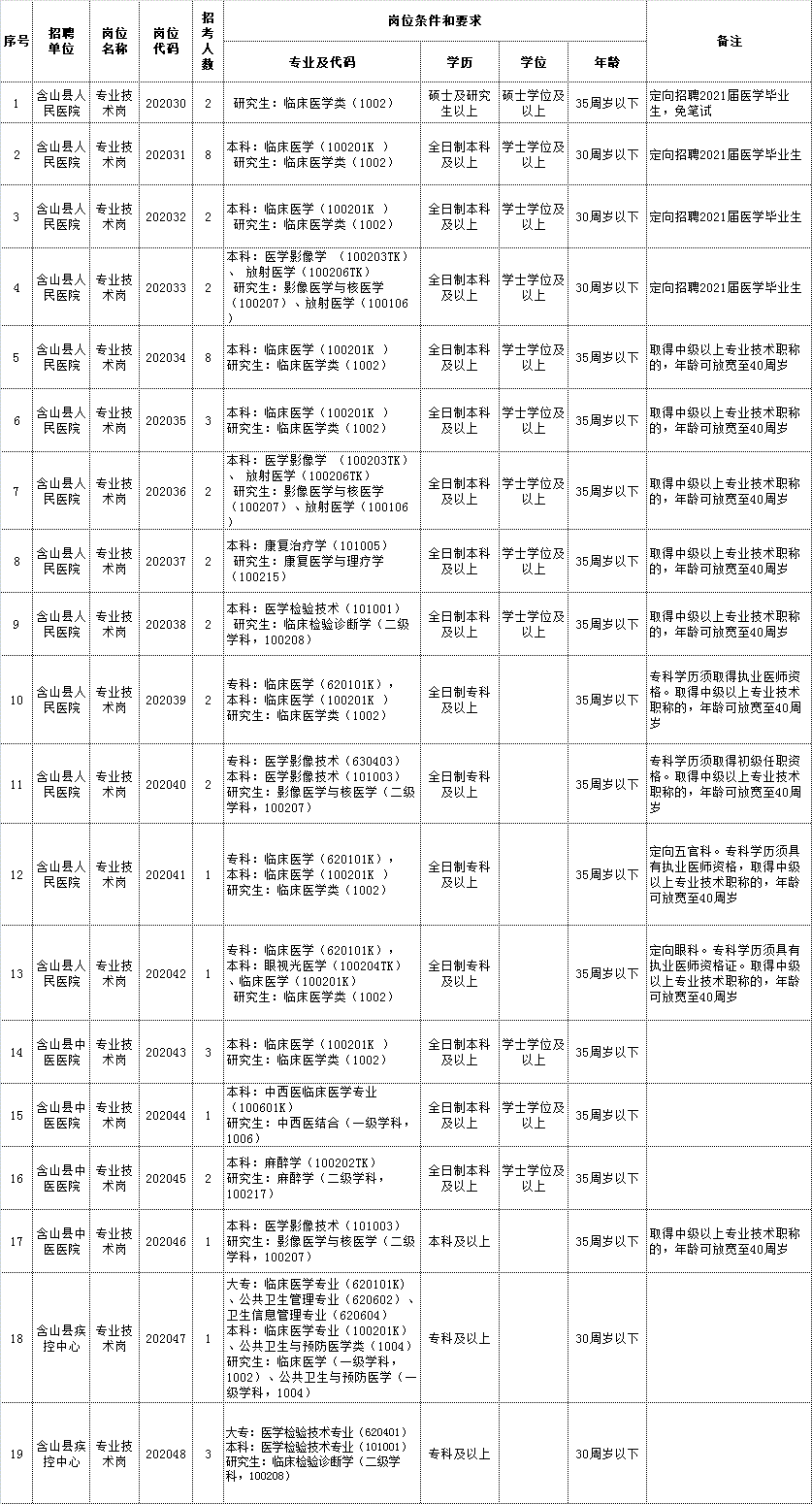 2020年馬鞍山含山縣醫(yī)療衛(wèi)生事業(yè)單位第二次公開招聘工作人員崗位計(jì)劃表