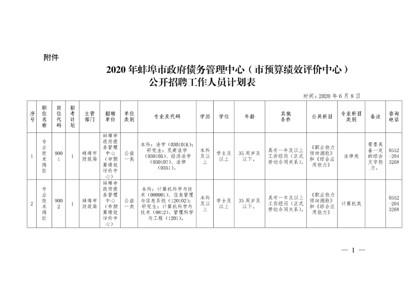2020年蚌埠市政府債務(wù)管理中心(市預(yù)算績效評價中心)公開招聘工作人員計劃表