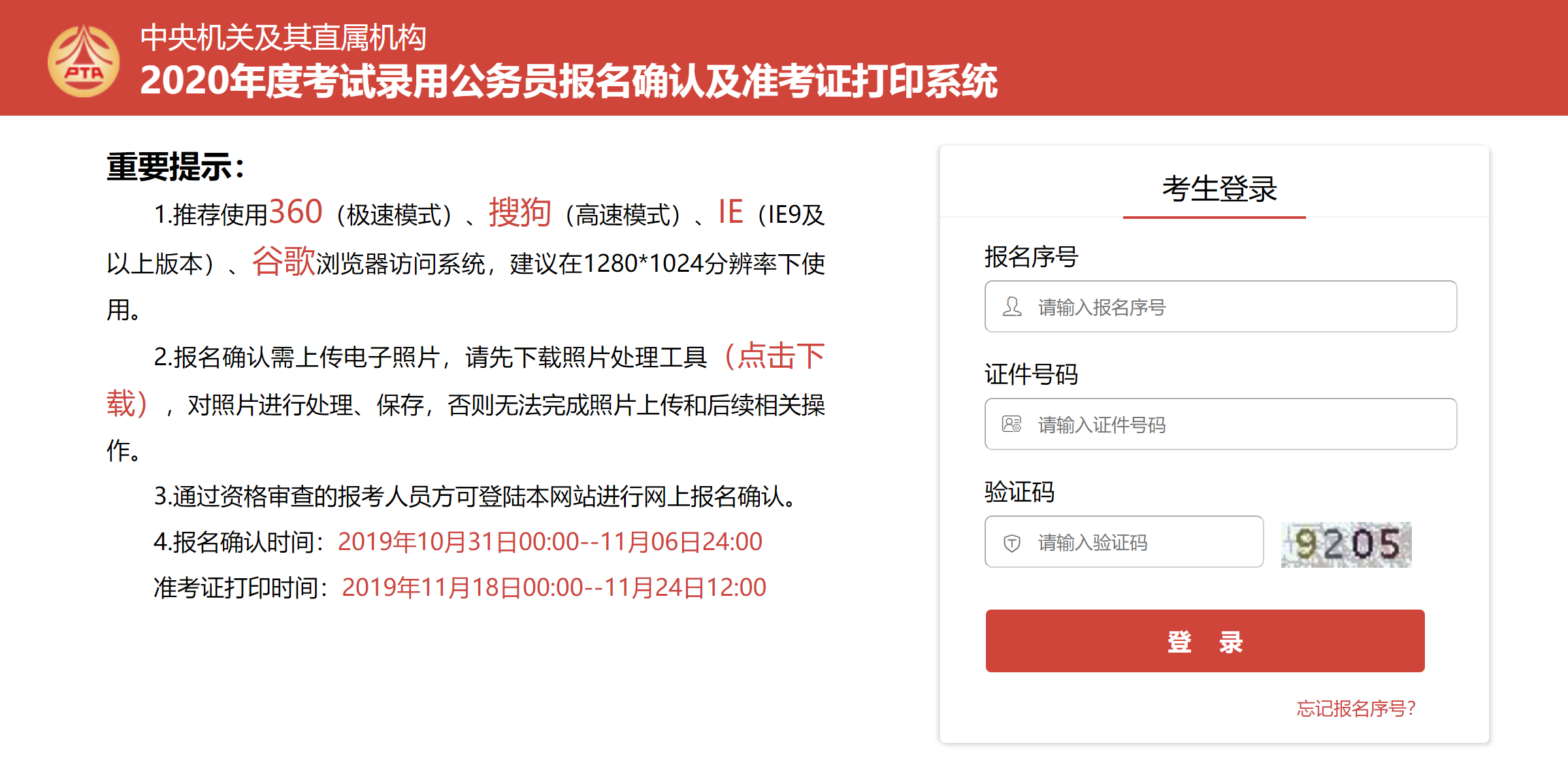 中央機關(guān)及其直屬機構(gòu)2020年度考試錄用公務(wù)員報名確認及準(zhǔn)考證打印網(wǎng)址:http://gwy.cpta.com.cn