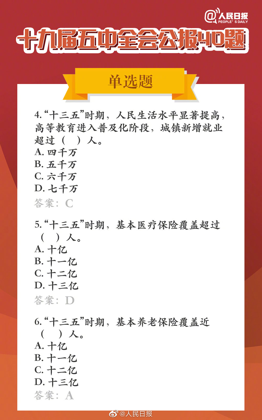 11-03 09:25:14閱讀()人民日報(bào)【長知識!五中全會公報(bào)40題,你會做幾道題?】預(yù)計(jì)2020年國內(nèi)生產(chǎn)總值突破多少億元?“十三五”時(shí)期,我國有多少農(nóng)村貧困人口實(shí)現(xiàn)脫貧?到2035年,我國人均國內(nèi)生產(chǎn)總值達(dá)到什么水平?十九屆五中全會公報(bào)里的這些問題,你都了解嗎?40道題帶你學(xué)習(xí)↓↓可能用得上,轉(zhuǎn)存! ???