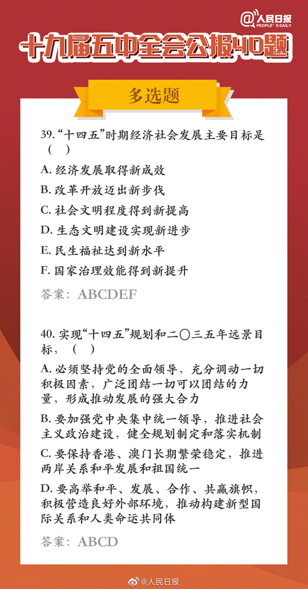十九屆五中全會公報(bào)40題