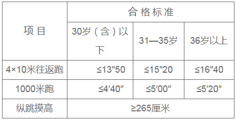 報(bào)考人員須參加全部三項(xiàng)體能測(cè)評(píng),其中兩項(xiàng)達(dá)標(biāo)方為合格,如放棄一項(xiàng)則視為不合格。體能測(cè)評(píng)合格的方可進(jìn)入下一環(huán)節(jié)。