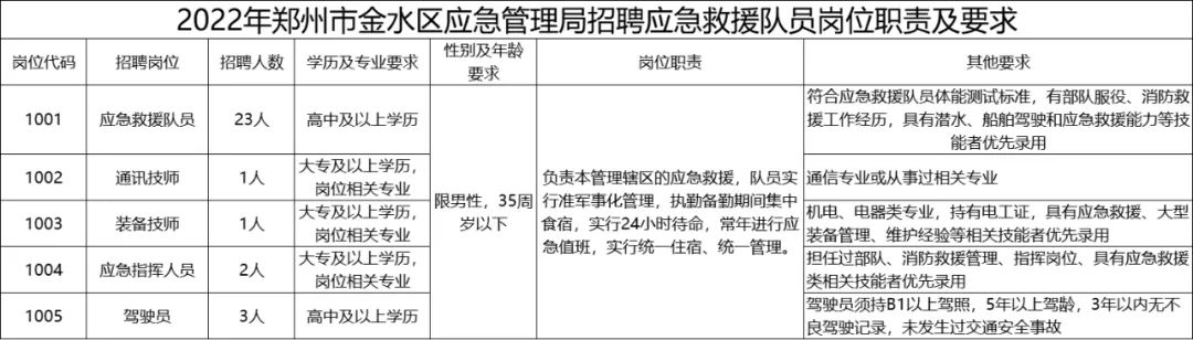 2022-04-05 23:47:12閱讀()鄭州公共招聘網(wǎng)為切實加強(qiáng)應(yīng)急管理隊伍建設(shè),解決應(yīng)急管理專業(yè)人才短缺問題,受鄭州市金水區(qū)應(yīng)急管理局委托,現(xiàn)面向社會公開招聘應(yīng)急救援隊員。具體公告如下:
