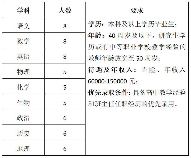 本次擬招聘學(xué)科教師57名,具體崗位和要求詳見下表