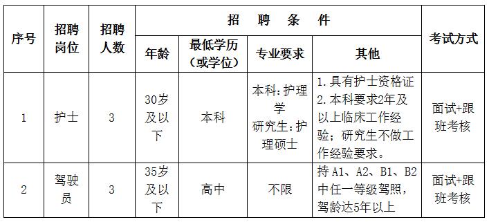 (6)護(hù)士崗位提供護(hù)士資格證書、執(zhí)業(yè)證書;駕駛員崗位提供駕駛證;
