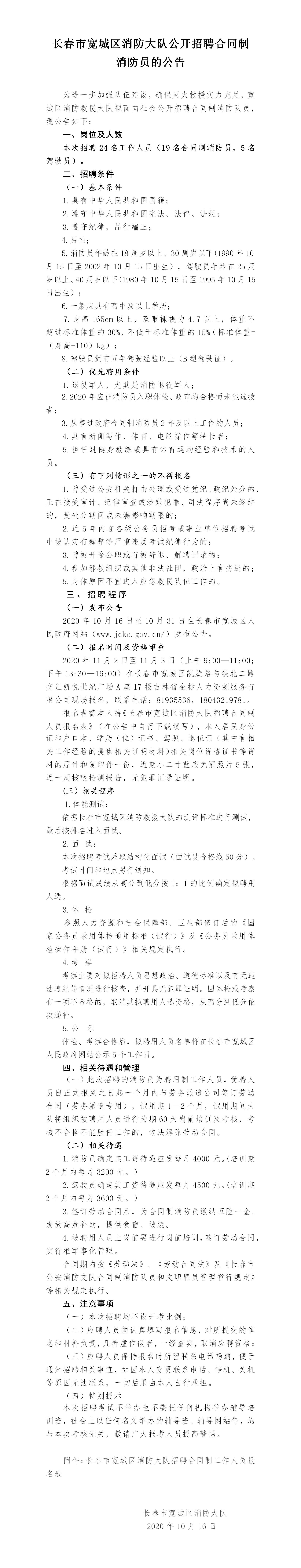 2020年長春市寬城區(qū)消防大隊(duì)公開招聘合同制消防員公告