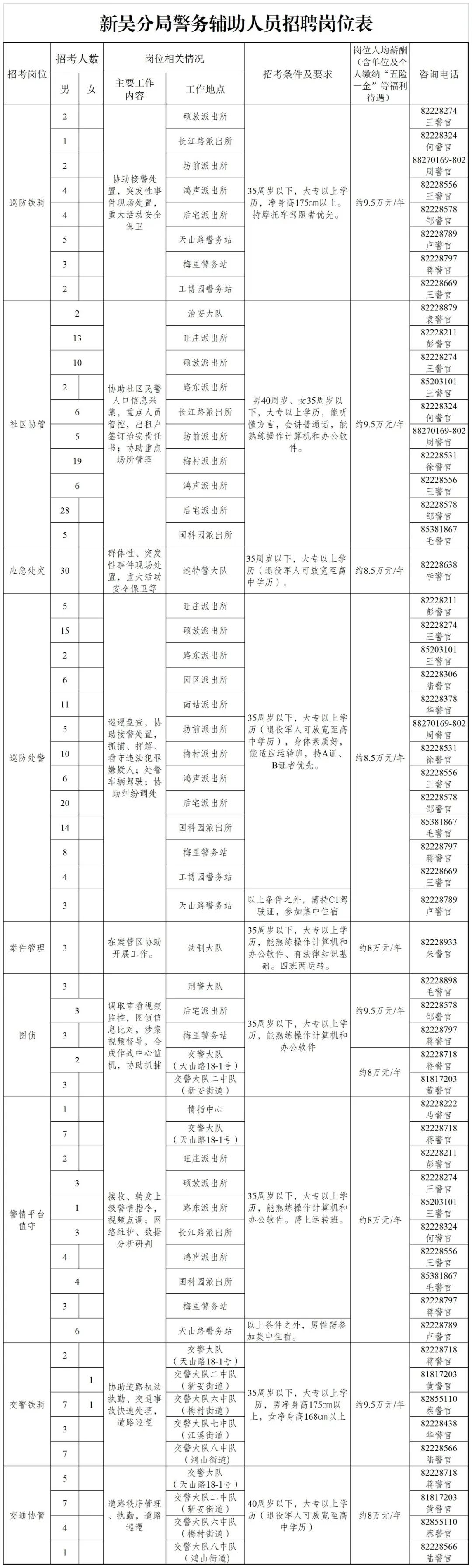 2023-05-14 23:46:56閱讀()新吳區(qū)人民政府因公安工作需要,新吳公安分局決定面向社會公開招聘警務輔助人員(非人民警察身份且非事業(yè)編制人員身份)347名,現(xiàn)將有關(guān)事項公告如下: