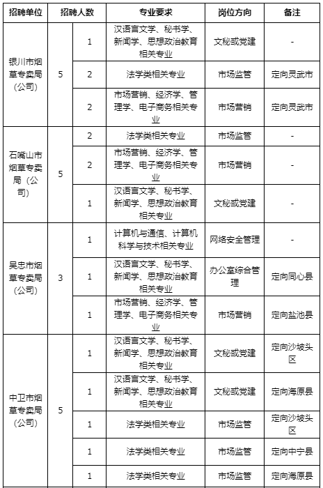 3.本次招考政策由寧夏區(qū)煙草專賣局(公司)保留最終解釋權(quán)。