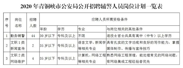 3.資格審核:報(bào)名時(shí)需提供戶口本、身份證、退伍證、學(xué)歷證原件及復(fù)印件各一張,近期1寸彩色照片4張,戶籍地派出所出具無(wú)違法犯罪記錄證明、銀行出具個(gè)人征信報(bào)告、報(bào)名現(xiàn)場(chǎng)填寫(xiě)《青銅峽市公安局輔警報(bào)名表》。