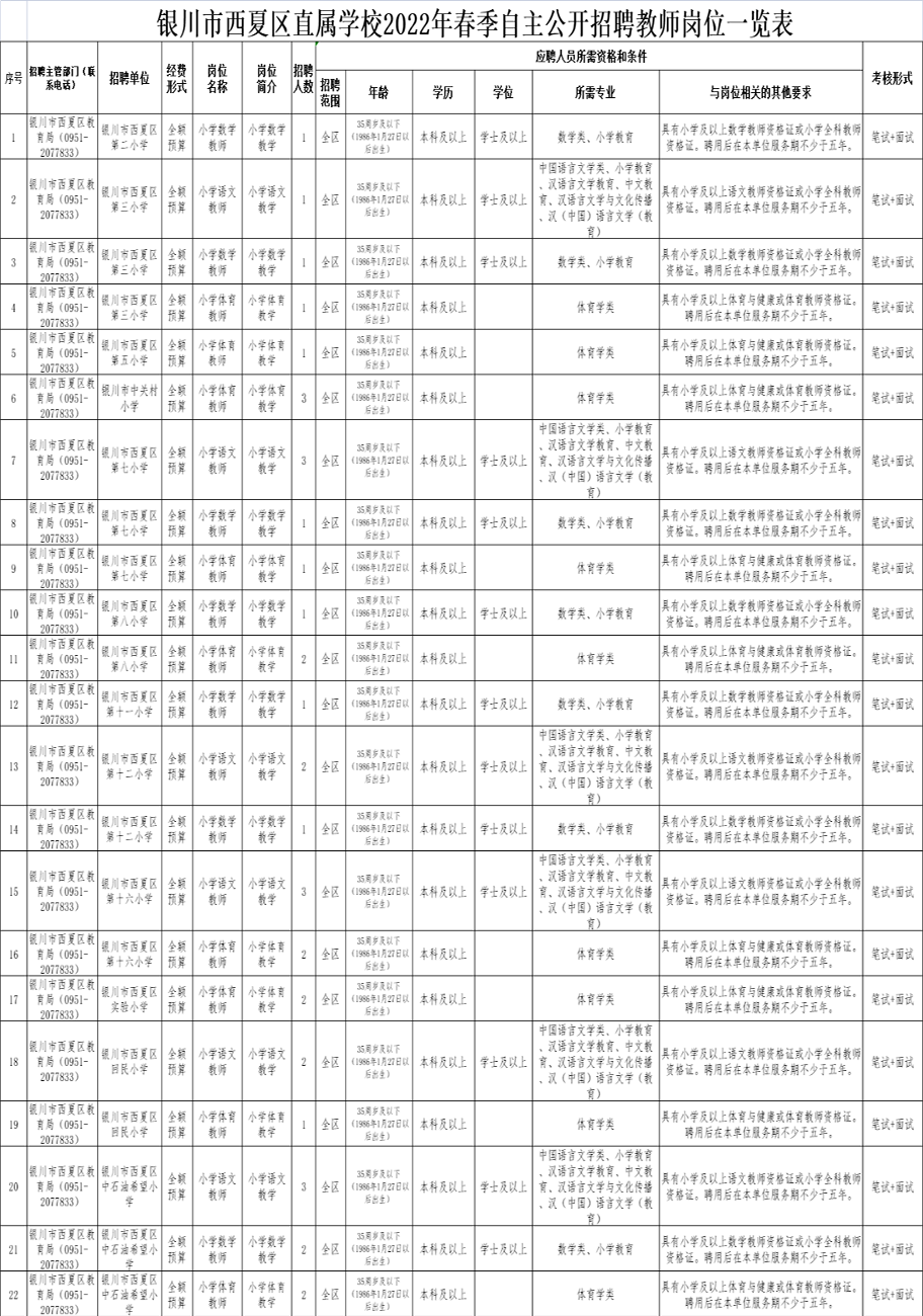 5.符合《銀川市西夏區(qū)直屬學(xué)校2022年春季自主公開招聘教師崗位一覽表》中各招聘崗位要求的相關(guān)條件。