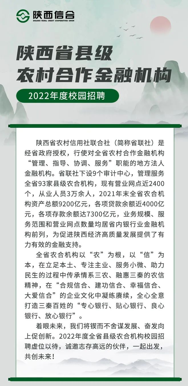 2022年陜西省縣級農村合作金融機構校園招聘公告