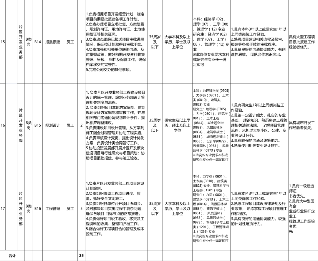 為滿足西咸城鄉(xiāng)集團(tuán)發(fā)展需要現(xiàn)面向社會(huì)公開招聘25人,具體公告如下。