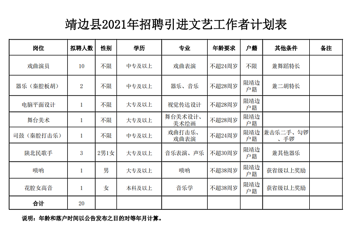 2021年榆林靖邊縣招聘引進文藝工作者公告