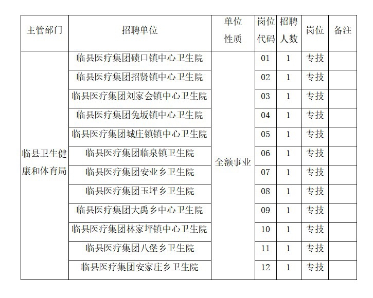 臨縣2021年鄉(xiāng)鎮(zhèn)衛(wèi)生院“鄉(xiāng)招村用”工作領(lǐng)導(dǎo)組