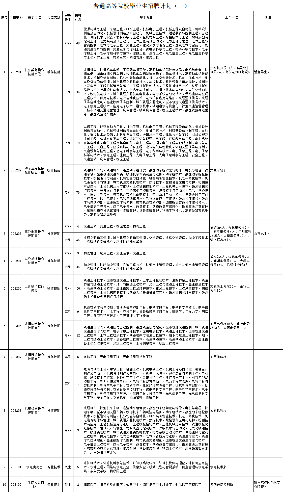 2020年中國鐵路太原局集團(tuán)有限公司高校畢業(yè)生招聘公告(三)