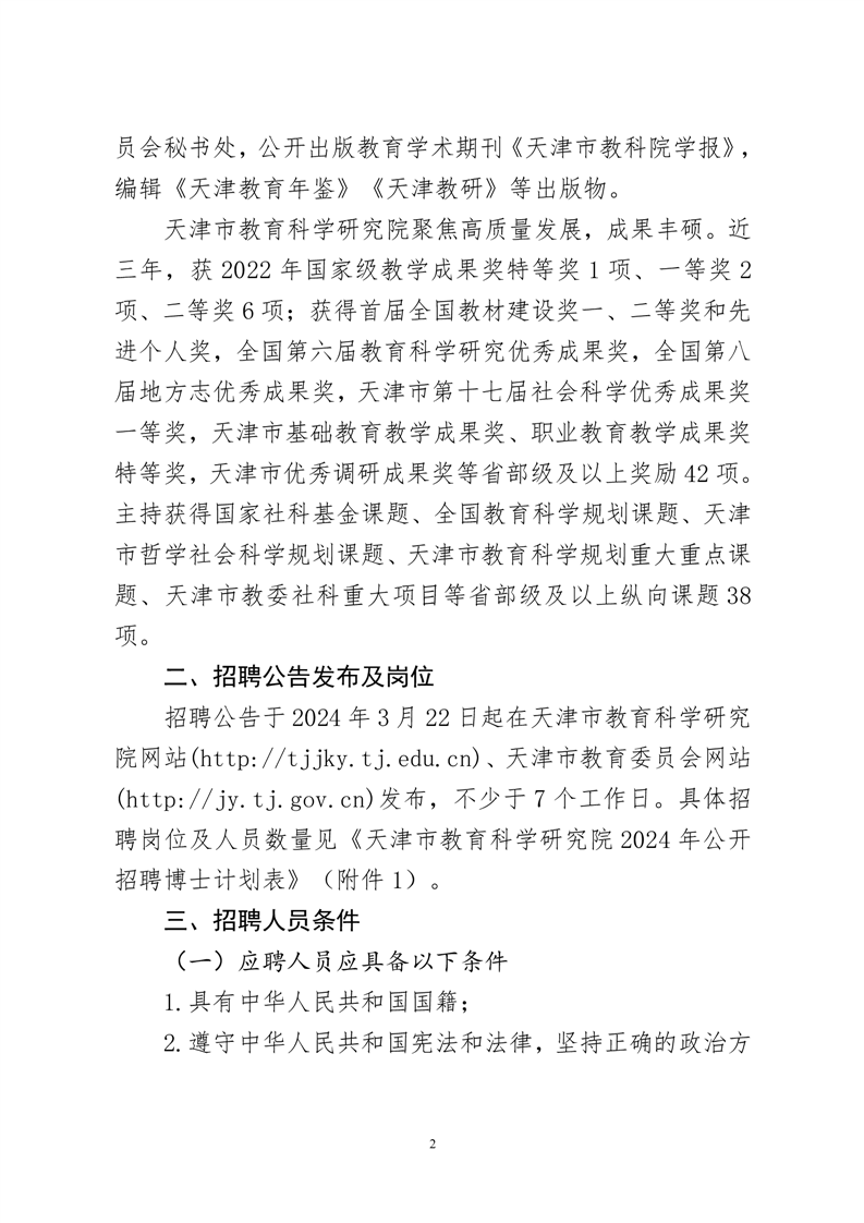 2024年天津市教育科學(xué)研究院公開招聘博士公告