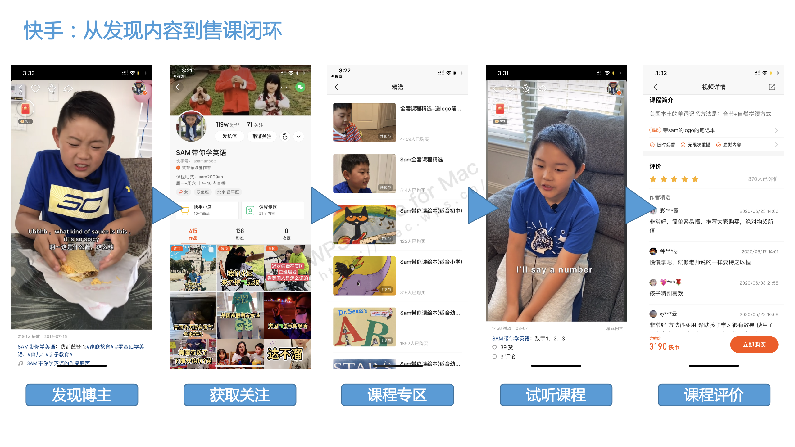 在產(chǎn)品功能上,需要向課程生產(chǎn)者提供工具賦能,例如音頻、視頻編輯等,并在內(nèi)容創(chuàng)作者使用過程中獲得反饋,探索短視頻時(shí)代可行的課程傳播方式。例如文中提到的小學(xué)生SAM,用一分鐘短視頻錄制場景英語,在視頻中教學(xué)三至五個(gè)英語單詞,就是短視頻使用中有效的教學(xué)方式。