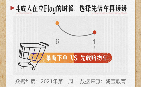 報告顯示,成年人的Flag往往自定義,周期長、見效慢、年復(fù)一年,4成消費者選擇把Flag先放購物車晾一晾,等待下一個躊躇滿志的時刻;小朋友的Flag“娘定義”,往往短平快、目標(biāo)準(zhǔn)、使命必達。