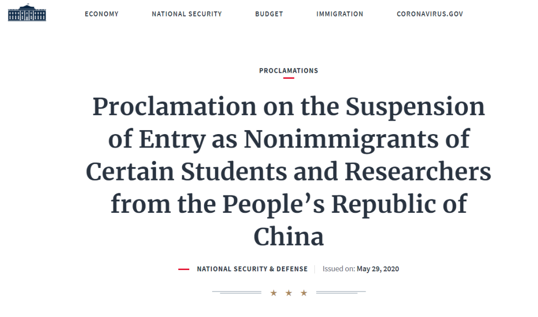 最后值得一提的是,在今年5月29日,美國(guó)總統(tǒng)特朗普曾簽發(fā)了一則封殺部分中國(guó)留學(xué)生和學(xué)者的總統(tǒng)令,禁止任何與在中國(guó)從事“軍民融合”項(xiàng)目的院校機(jī)構(gòu)有關(guān)聯(lián)的學(xué)生和學(xué)者,來(lái)美國(guó)進(jìn)行本科以上的學(xué)習(xí)和學(xué)術(shù)研究。