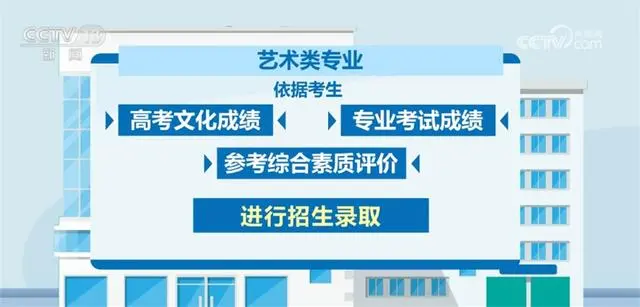 藝術(shù)類專業(yè)依據(jù)考生高考文化成績、專業(yè)考試成績,參考綜合素質(zhì)評價進行招生錄取。分為四類情況: