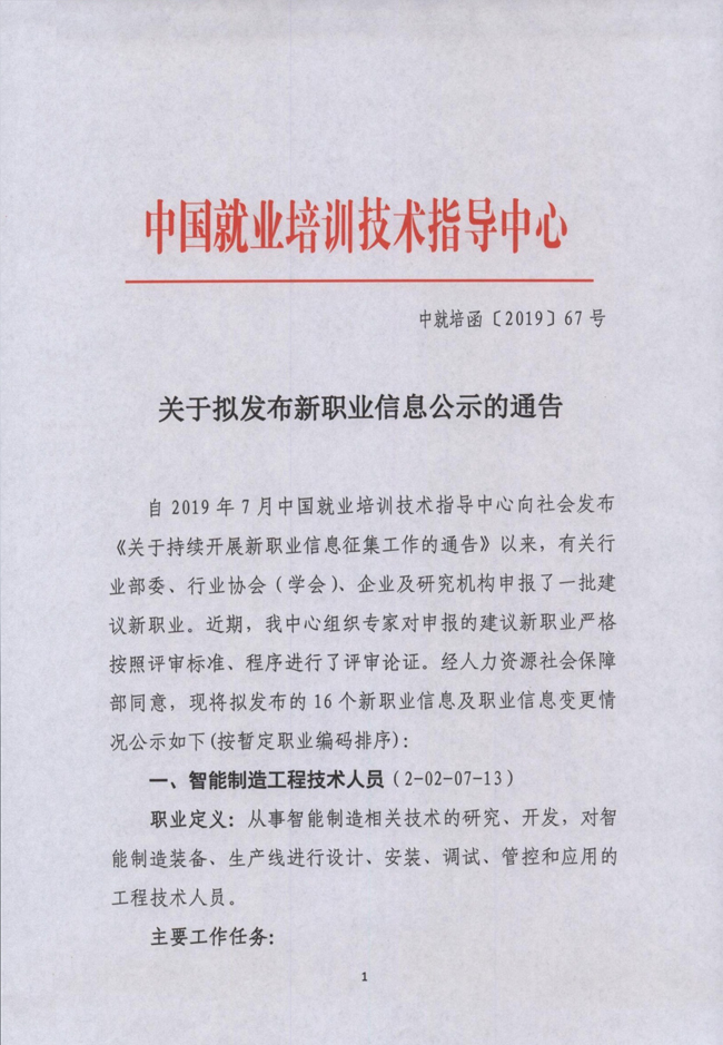 據(jù)中國(guó)就業(yè)培訓(xùn)技術(shù)指導(dǎo)中心官方網(wǎng)站了解到,自2019年7月中國(guó)就業(yè)培訓(xùn)技術(shù)指導(dǎo)中心向社會(huì)發(fā)布《關(guān)于持續(xù)開(kāi)展新職業(yè)信息征集工作的通告》以來(lái),有關(guān)行業(yè)部委、行業(yè)協(xié)會(huì)(學(xué)會(huì))、企業(yè)及研究機(jī)構(gòu)申報(bào)了一批建議新職業(yè)。