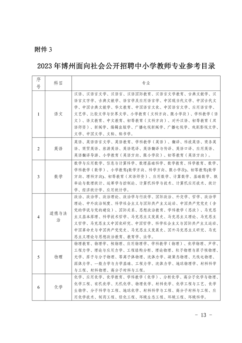 1.專業(yè)要求:詳見《博州2023年面向社會(huì)公開招聘中小學(xué)幼兒園教師考試專業(yè)參考目錄》;
