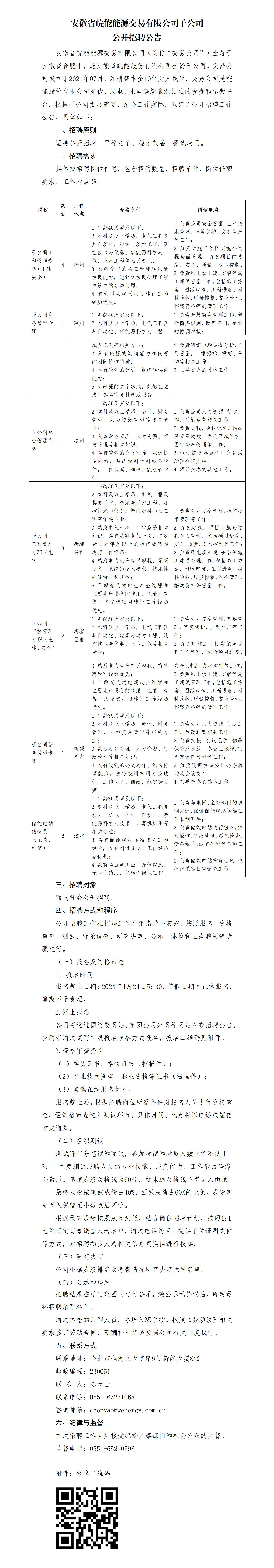 2024年安徽省皖能能源交易有限公司子公司公開(kāi)招聘公告