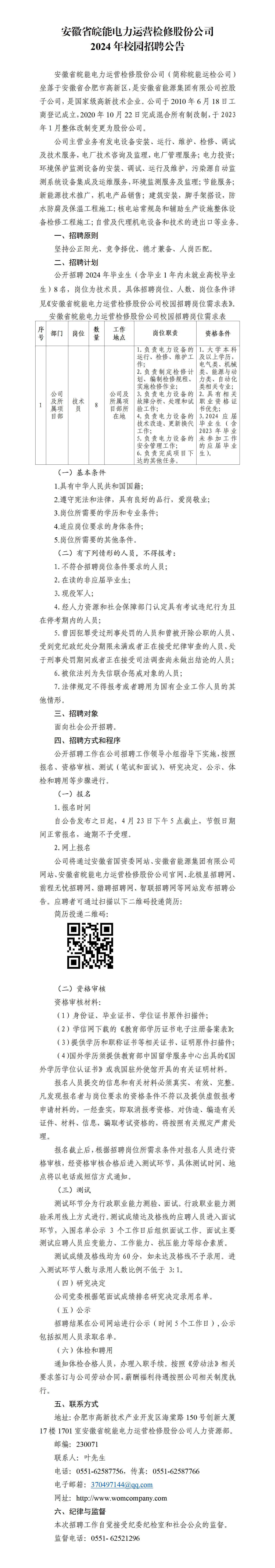 2024年安徽省皖能電力運營檢修股份公司校園招聘公告