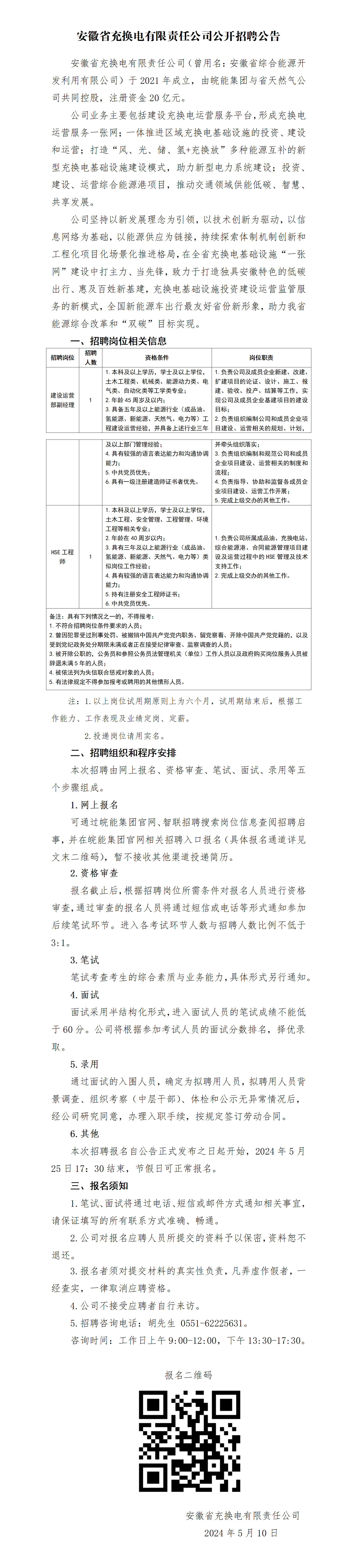 2024年安徽省充換電有限責(zé)任公司公開招聘公告
