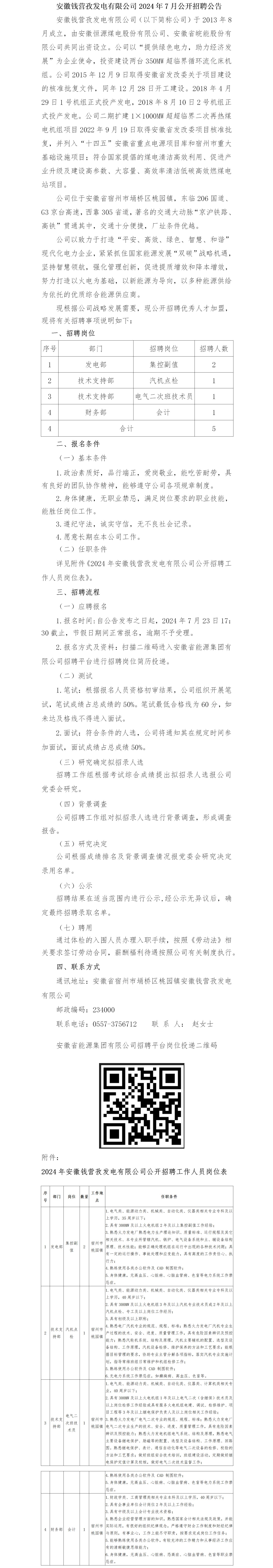 2024年宿州安徽錢營(yíng)孜發(fā)電有限公司公開招聘公告