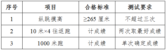 (四)體能測(cè)評(píng)參照《關(guān)于印發(fā)公安機(jī)關(guān)錄用人民警察體能測(cè)評(píng)項(xiàng)目和標(biāo)準(zhǔn)》(人社部發(fā)〔2011〕48號(hào))、《公安機(jī)關(guān)人民警察體育鍛煉達(dá)標(biāo)標(biāo)準(zhǔn)》等文件規(guī)定執(zhí)行。