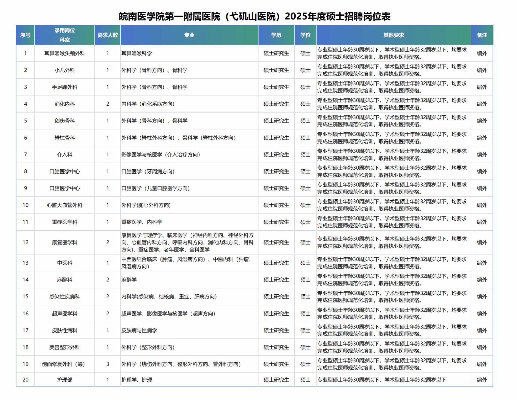 2025年蕪湖皖南醫(yī)學院第一附屬醫(yī)院(弋磯山醫(yī)院)公開招聘碩士人才預公告