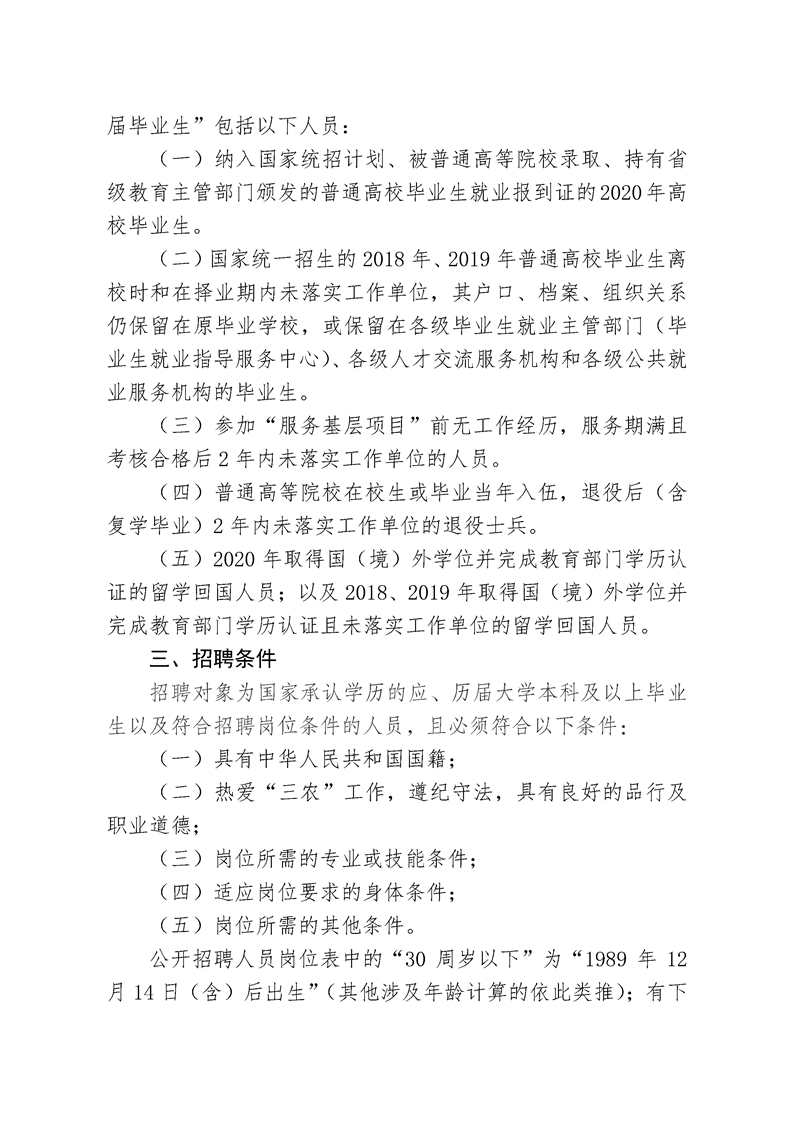 (三)參加“服務(wù)基層項(xiàng)目”前無(wú)工作經(jīng)歷,服務(wù)期滿且考核合格后2年內(nèi)未落實(shí)工作單位的人員。