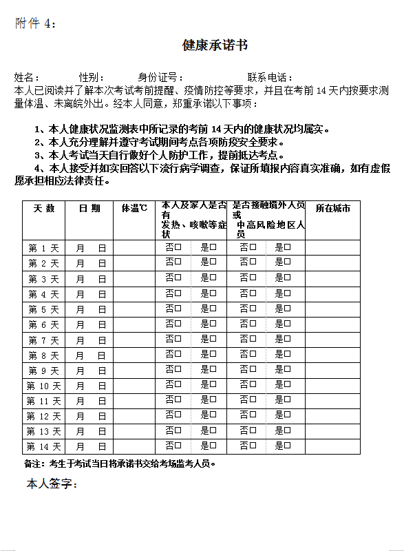 4、健康承諾書(shū)