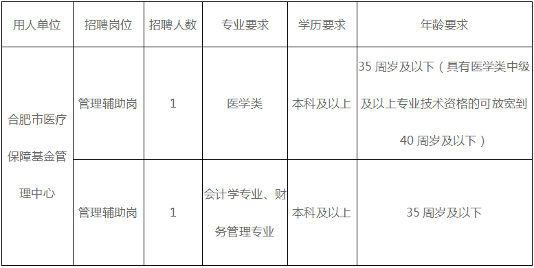 因工作需要,合肥市醫(yī)療保障基金管理中心面向社會公開招聘2名工作人員。具體如下: